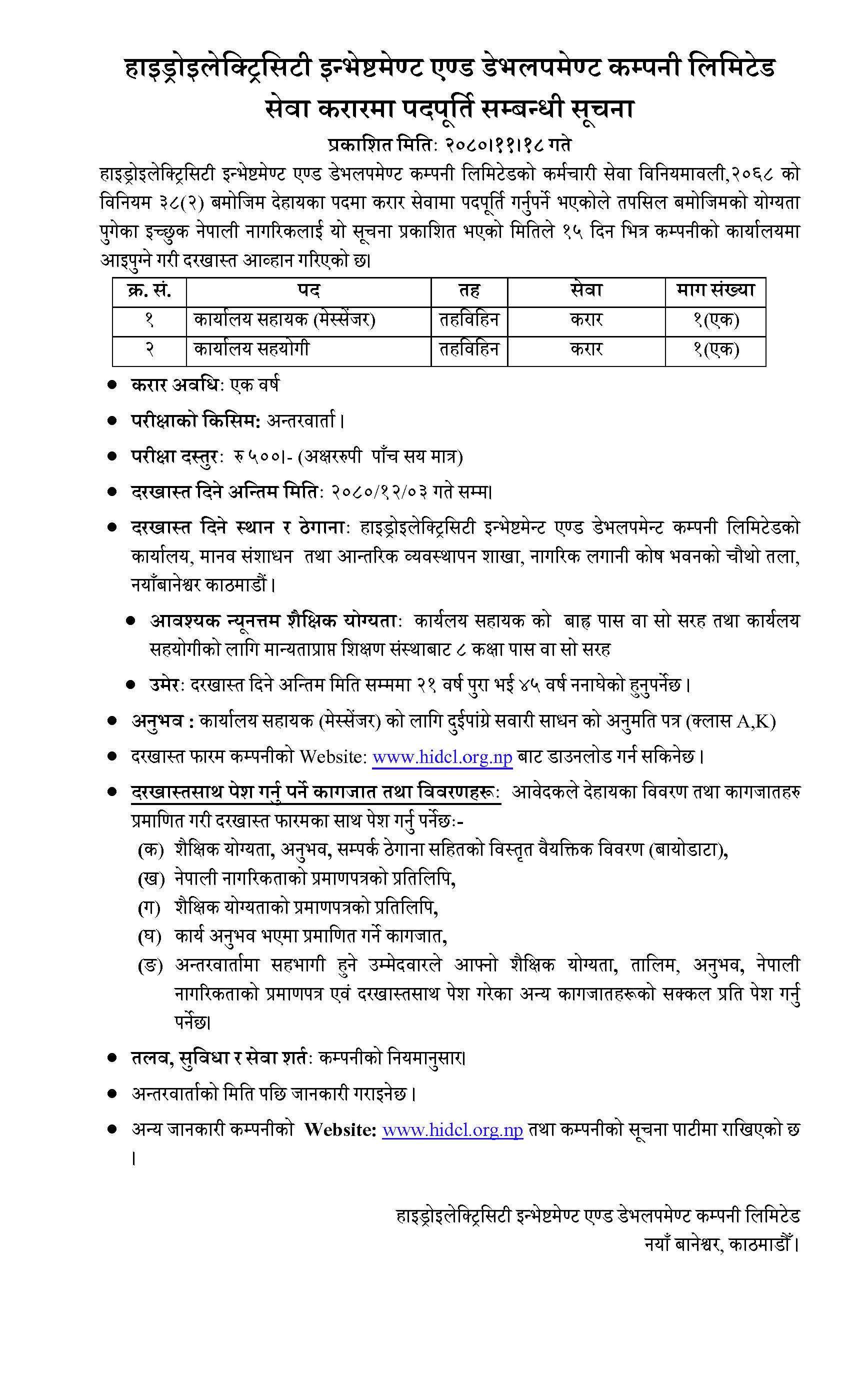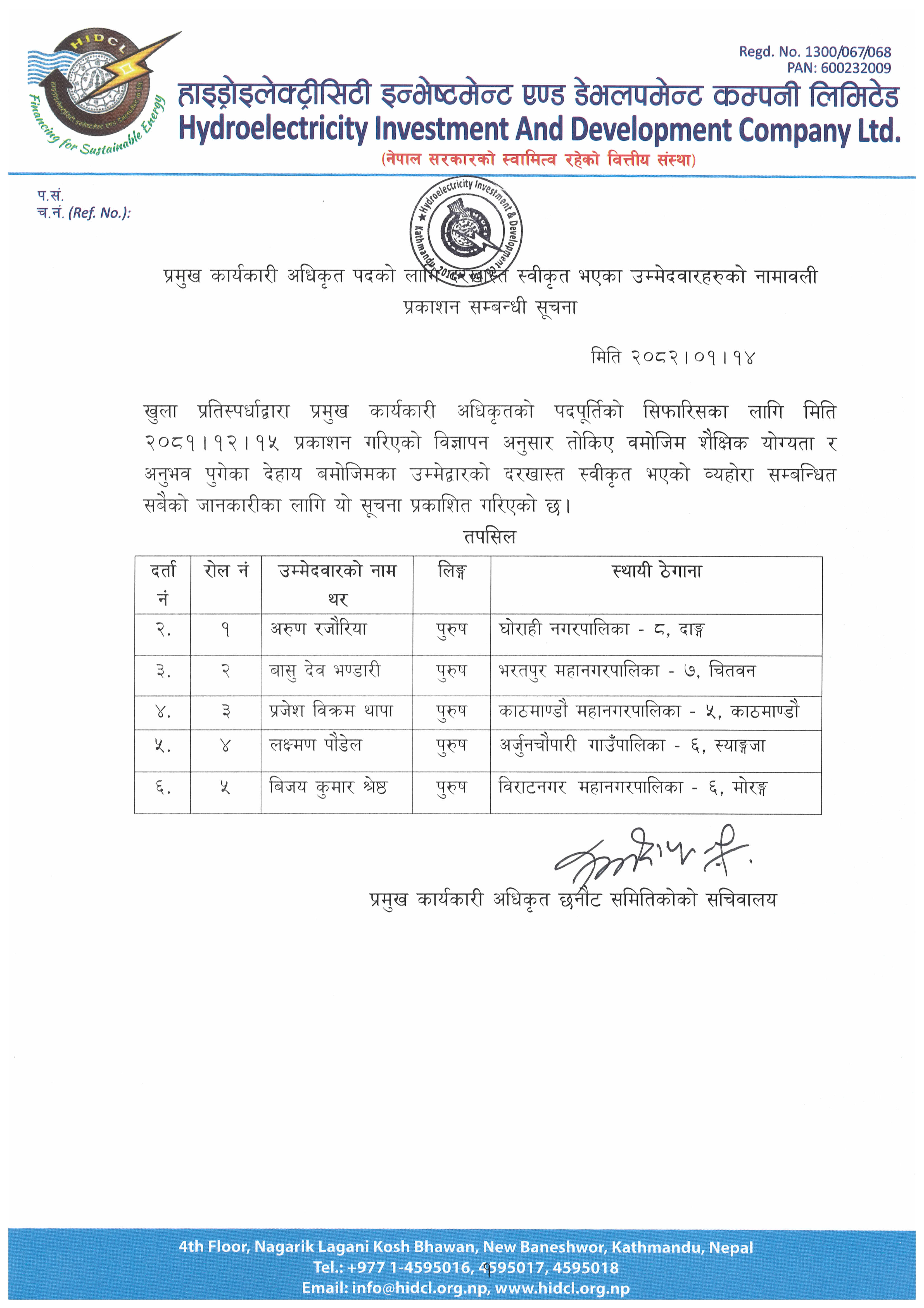 - तह -१०, प्रमुख प्रबन्धक (हाइड्रोपावर)का उम्मेदवारको नामावली प्रकासन गरिएको सूचना