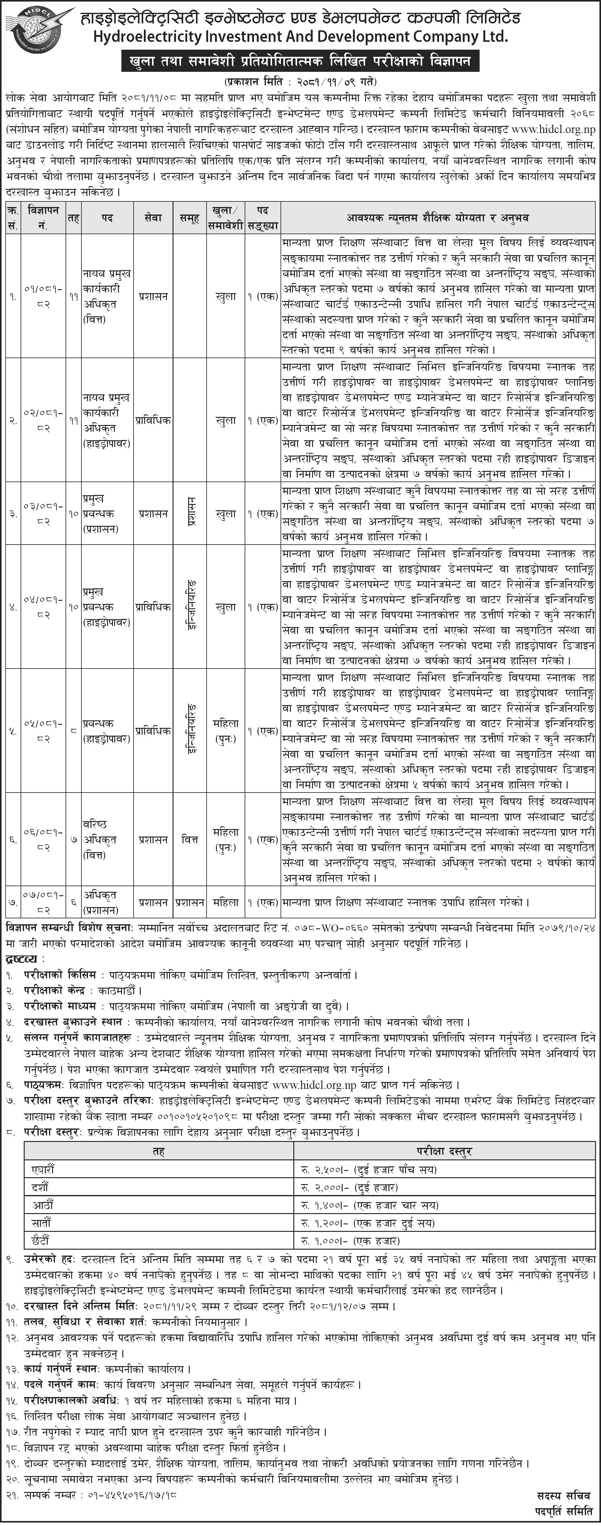 - खुला तथा समावेशी प्रतियोगितात्मक लिखित परिक्षाको विज्ञापन