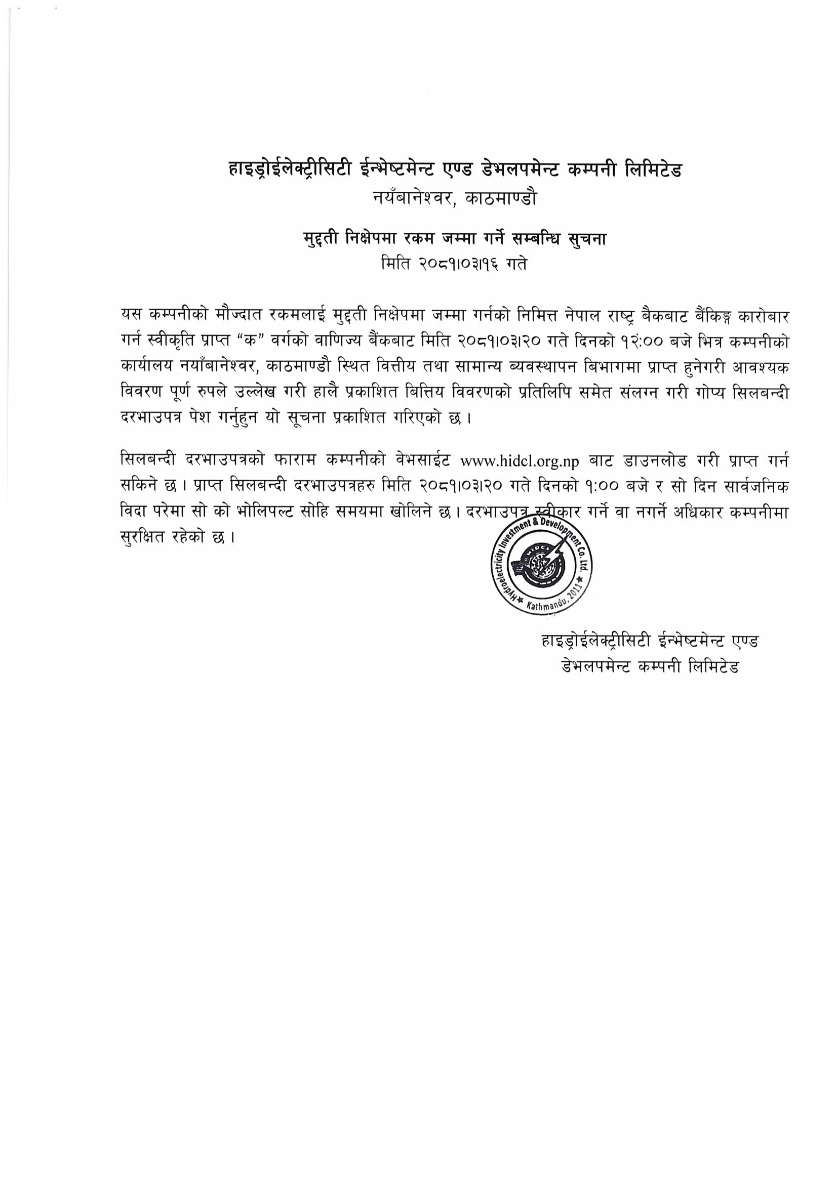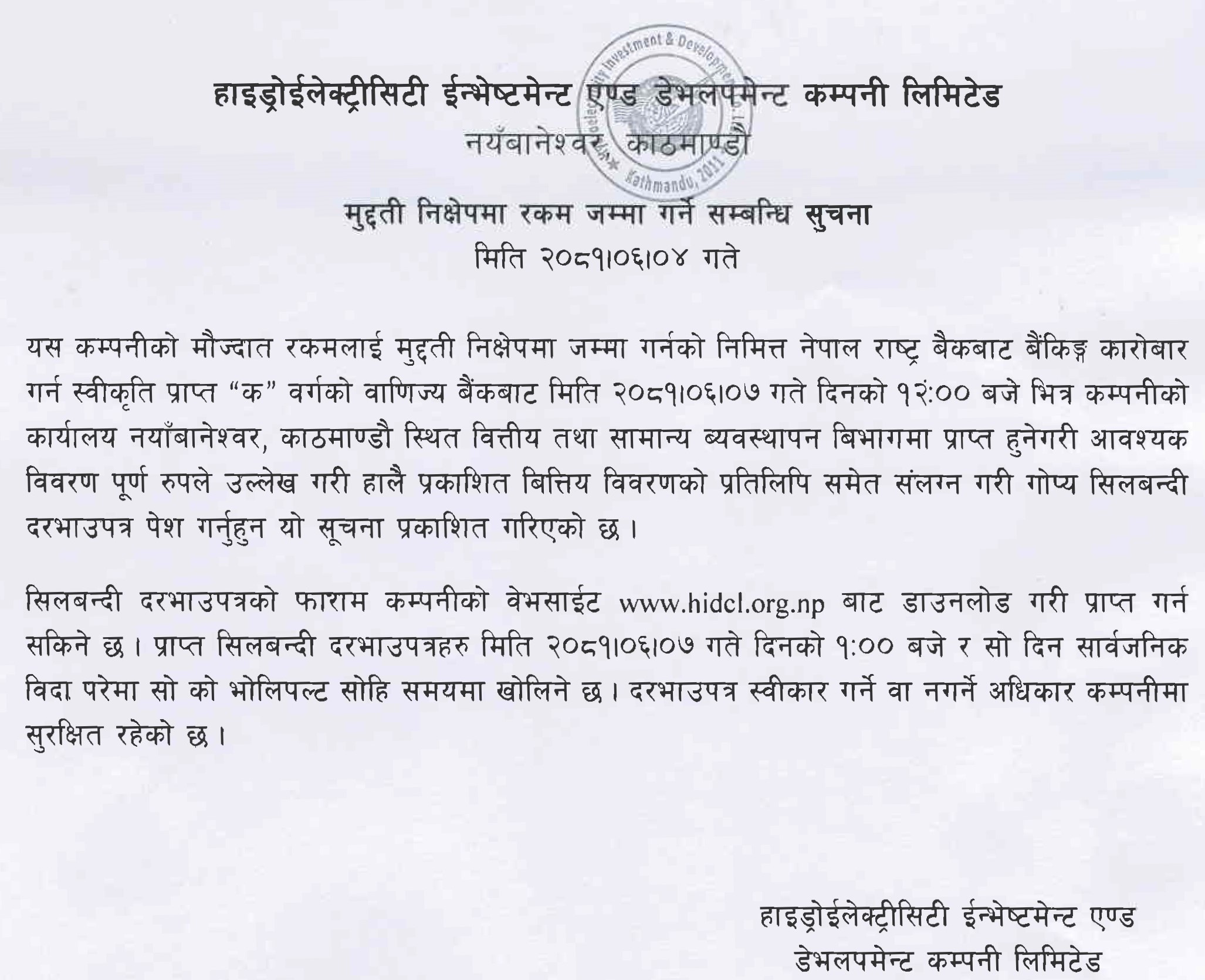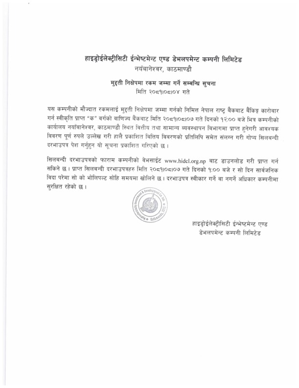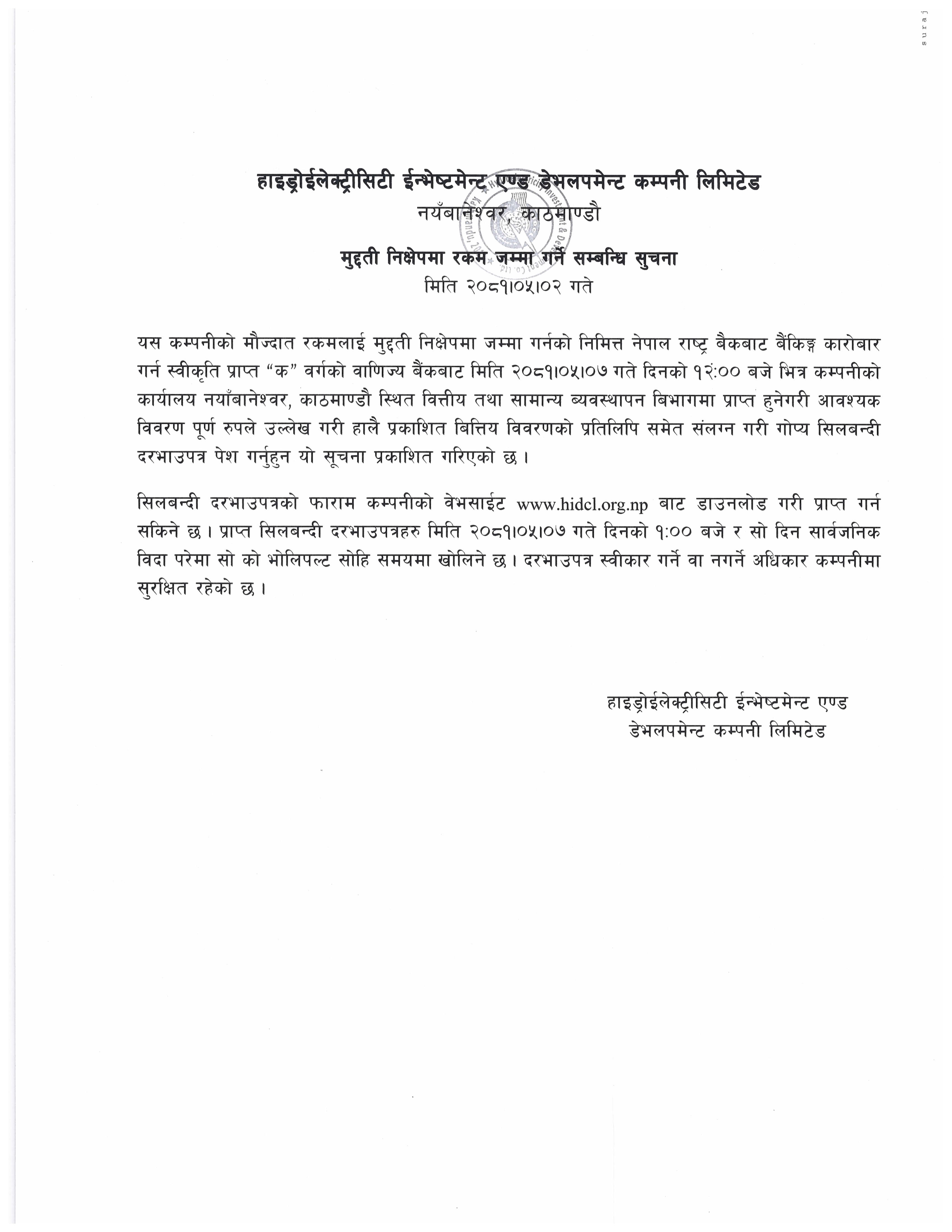- मुद्दती निक्षेपमा रकम जम्मा गर्ने सम्बन्धी सूचना