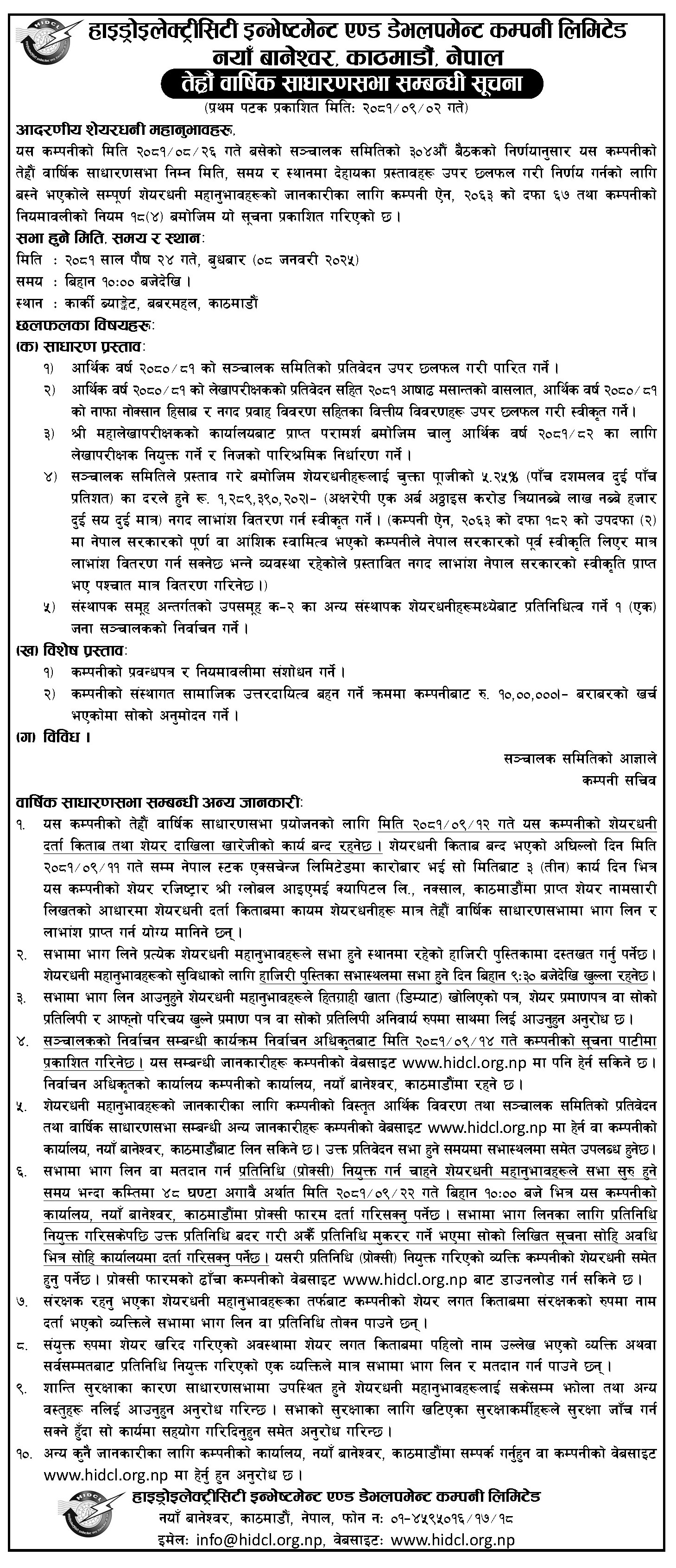 - तेह्रौँ वार्षिक साधारण सभा सम्बन्धी सूचना