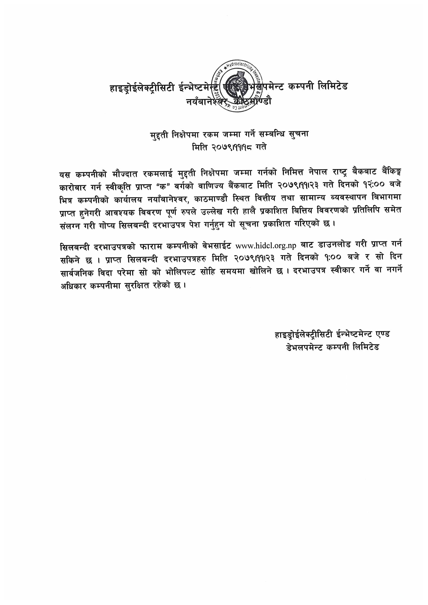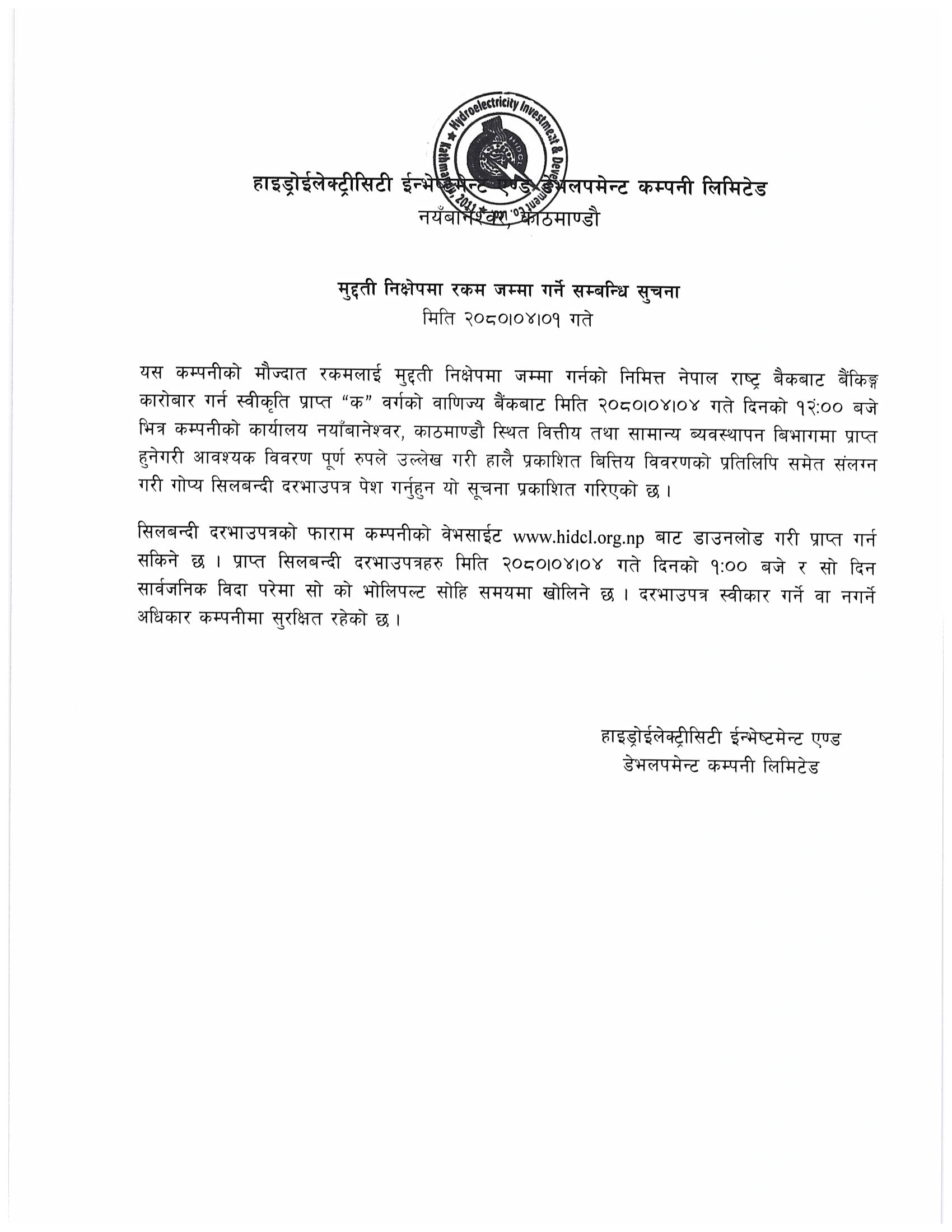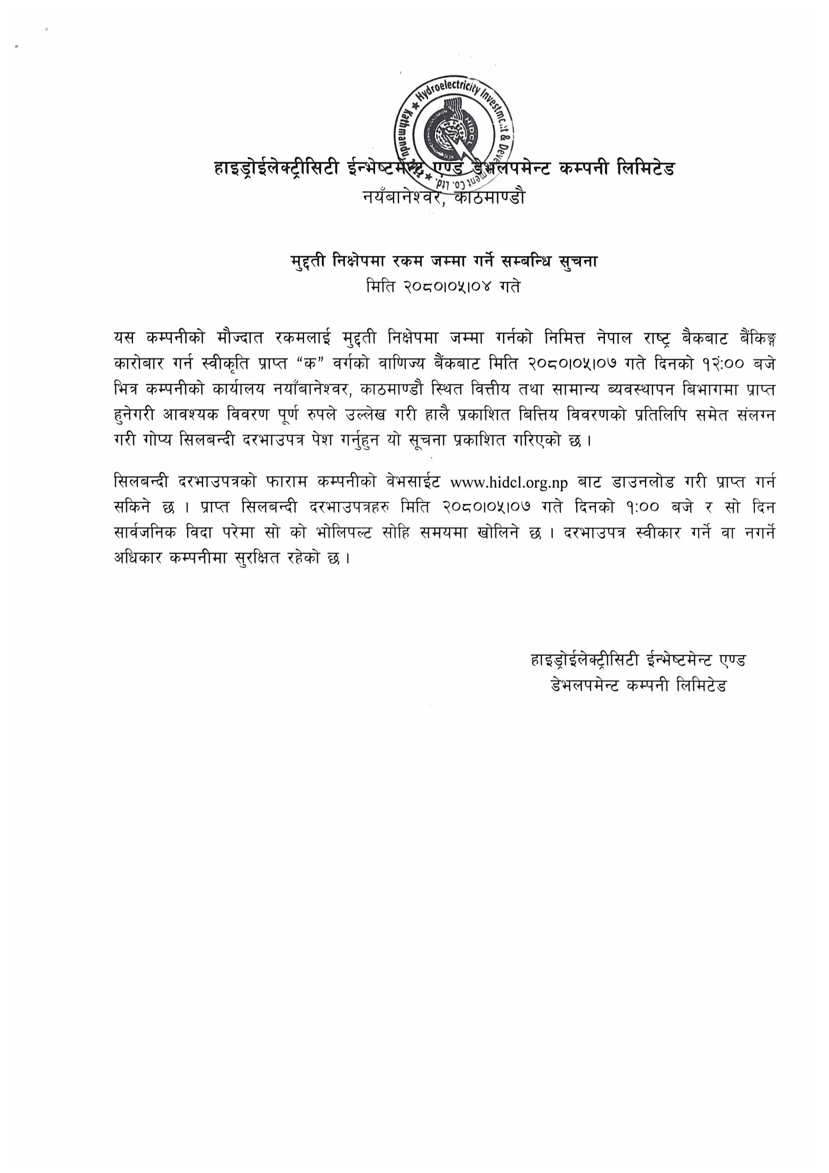 - मुद्दती निक्षेप रकम जम्मा गर्ने सम्बन्धि सुचना