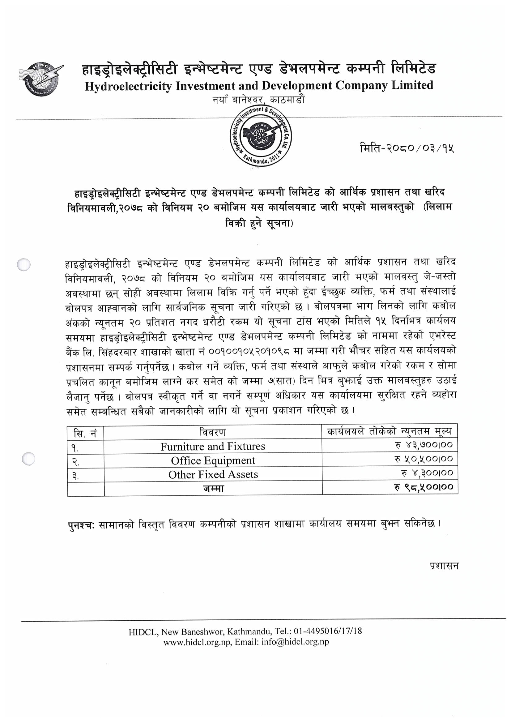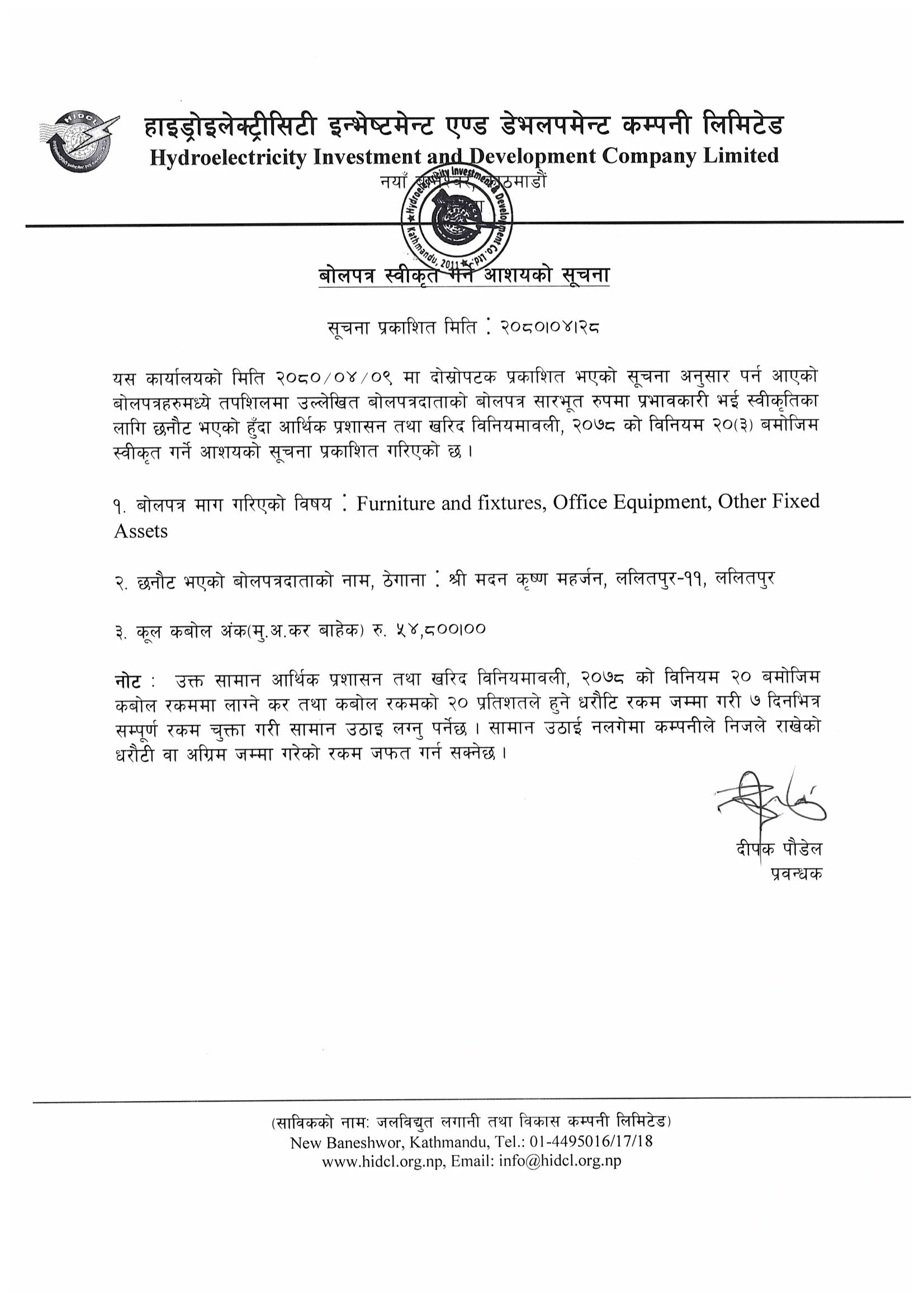 - बोलपत्र स्वीकृत गर्ने आशयको सूचना