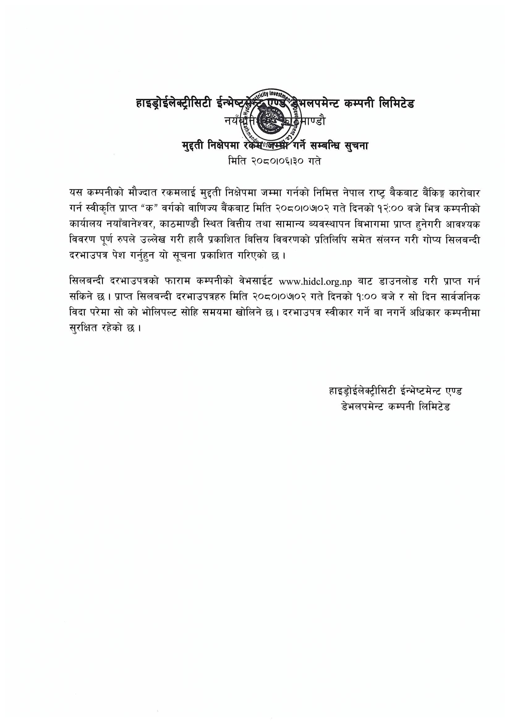 - शिलबन्दी बोलपत्रद्वारा शेयर बिक्री गर्ने बारे सूचना