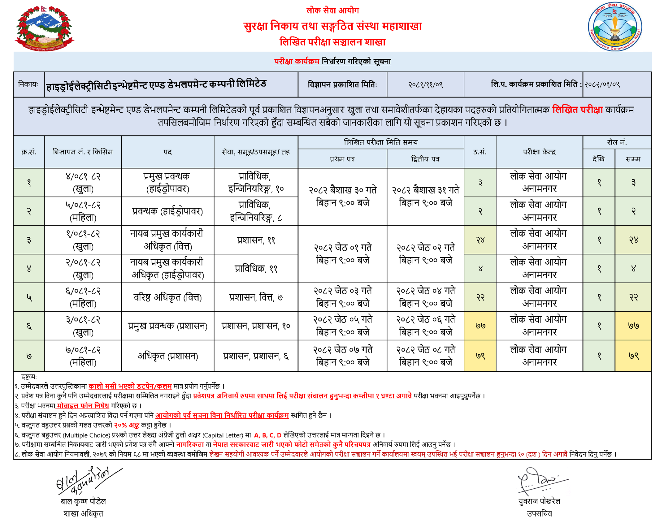 - पूर्व प्रकाशित विज्ञापन अनुसार खुला तथा समावेशी तर्फको लिखित परीक्षा कार्यक्रम प्रकाशन गरिएको सूचना