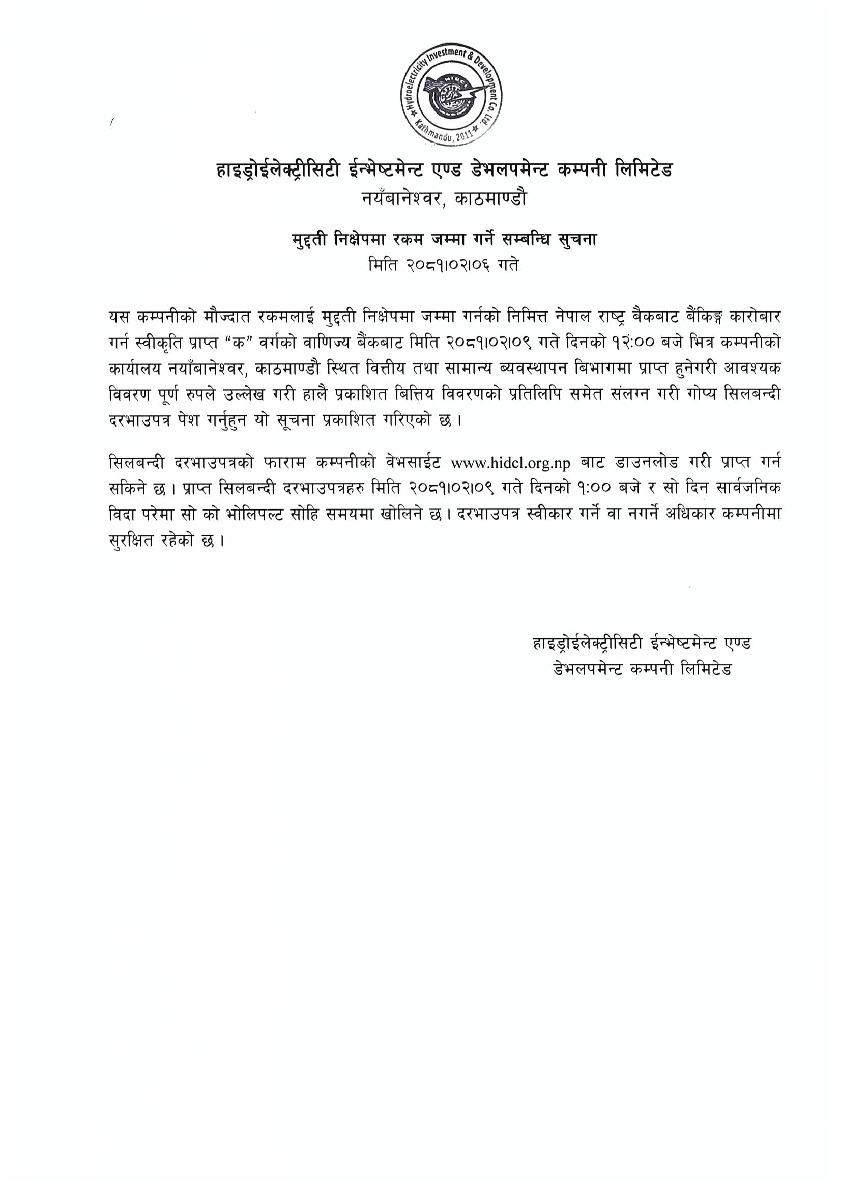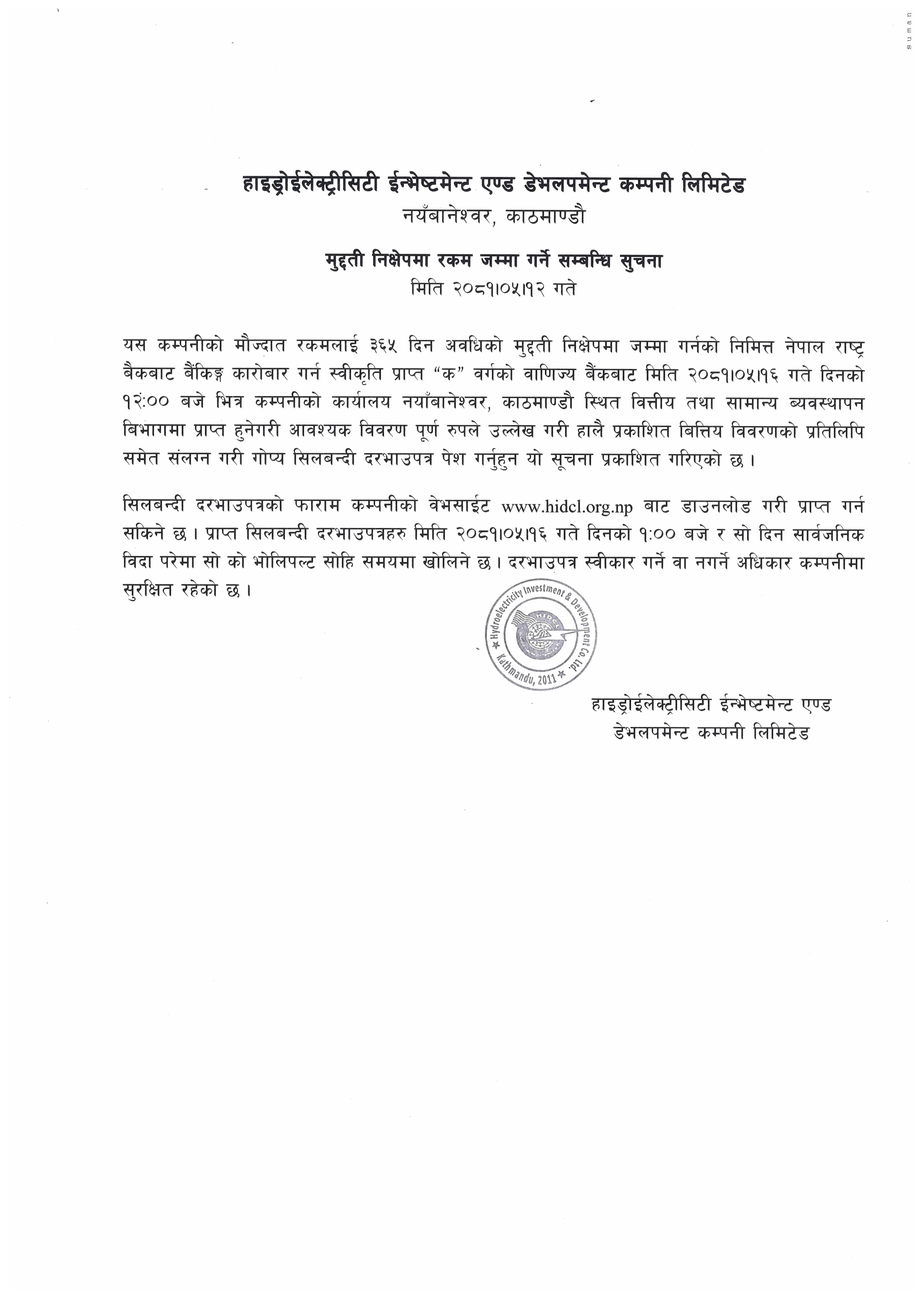 - मुद्दती निक्षेपमा रकम जम्मा गर्ने सम्बन्धी सूचना