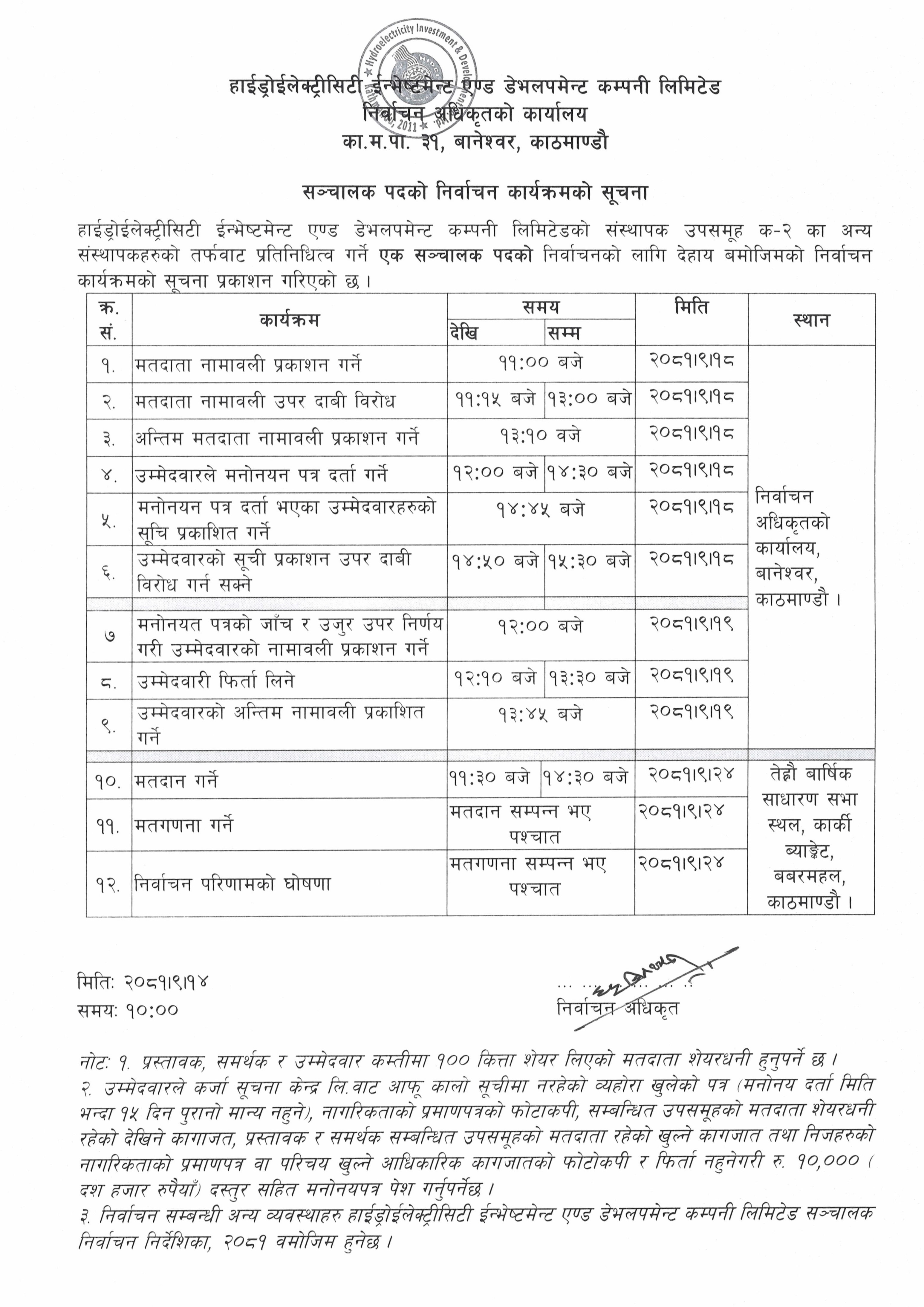 - सञ्चालक पदको निर्वाचन कार्यक्रमको सूचना