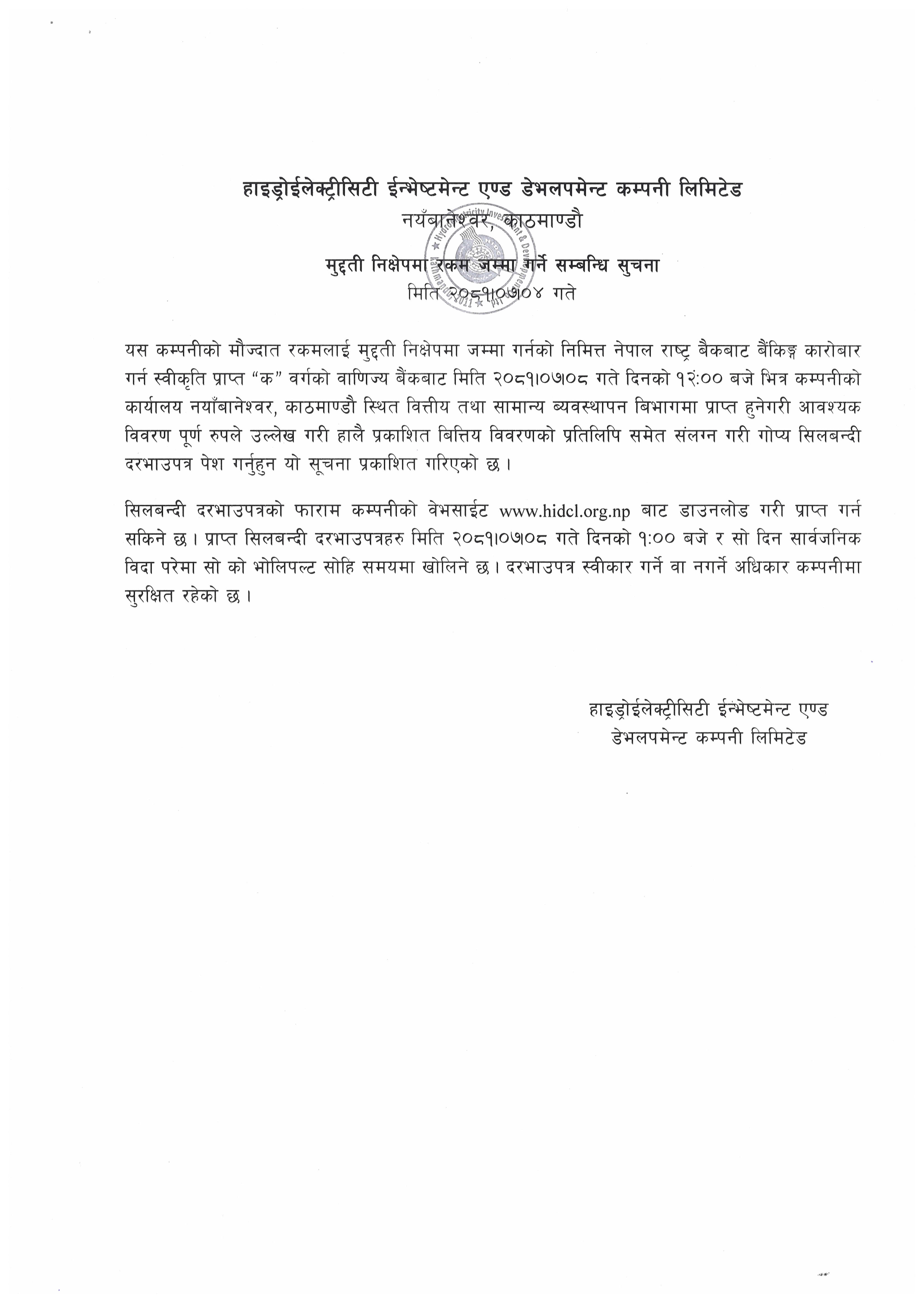 - शिलबन्दी बोलपत्रद्वारा शेयर बिक्री गर्ने बारे सूचना