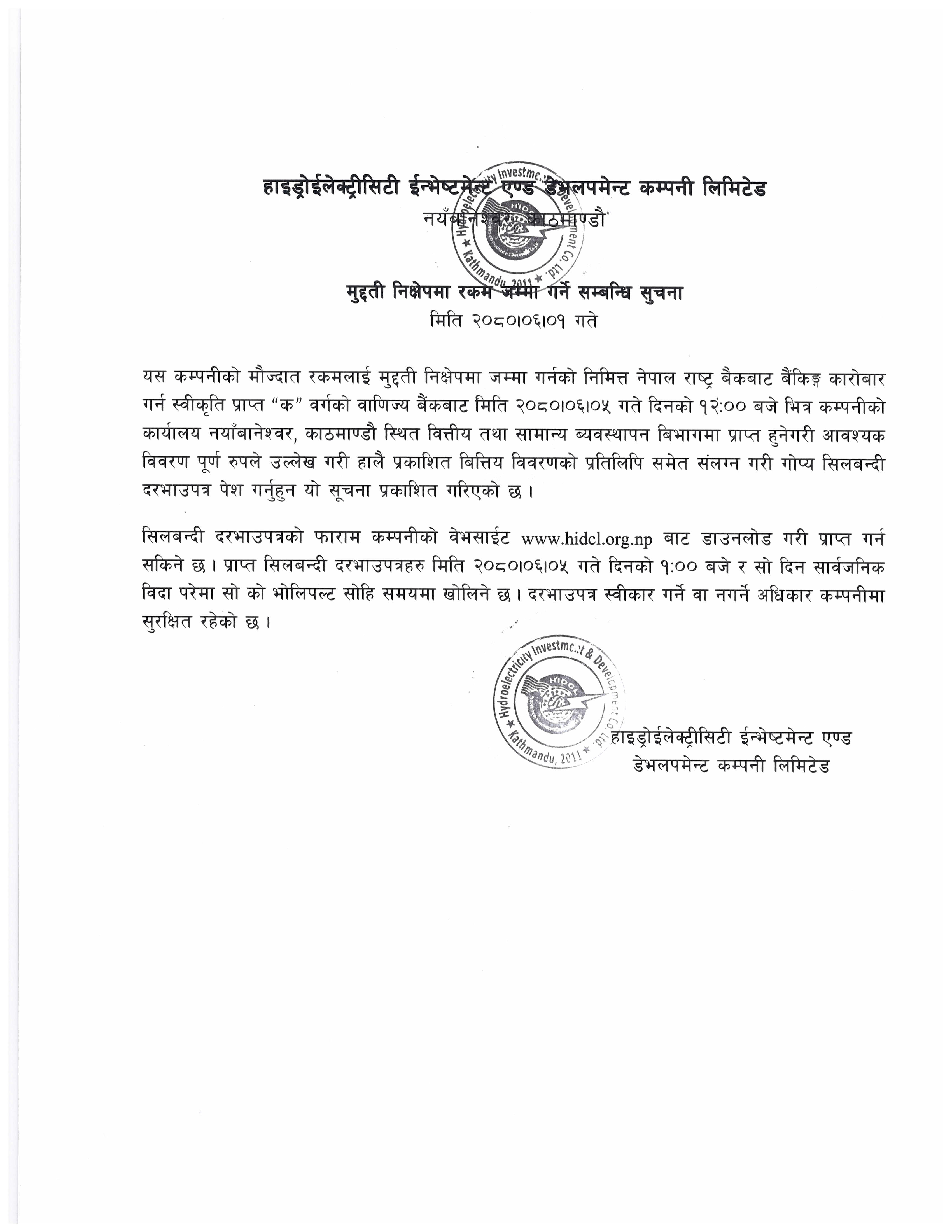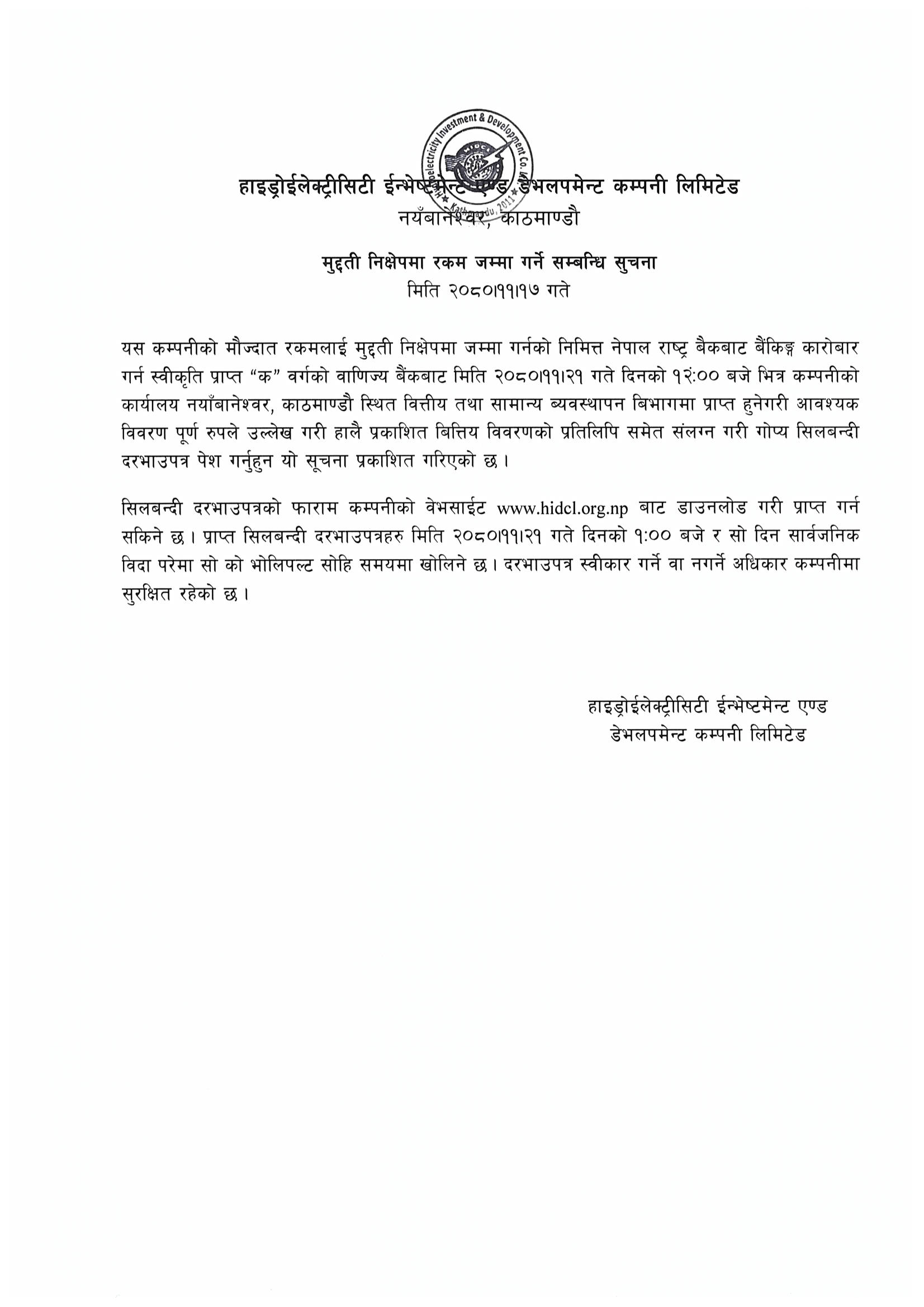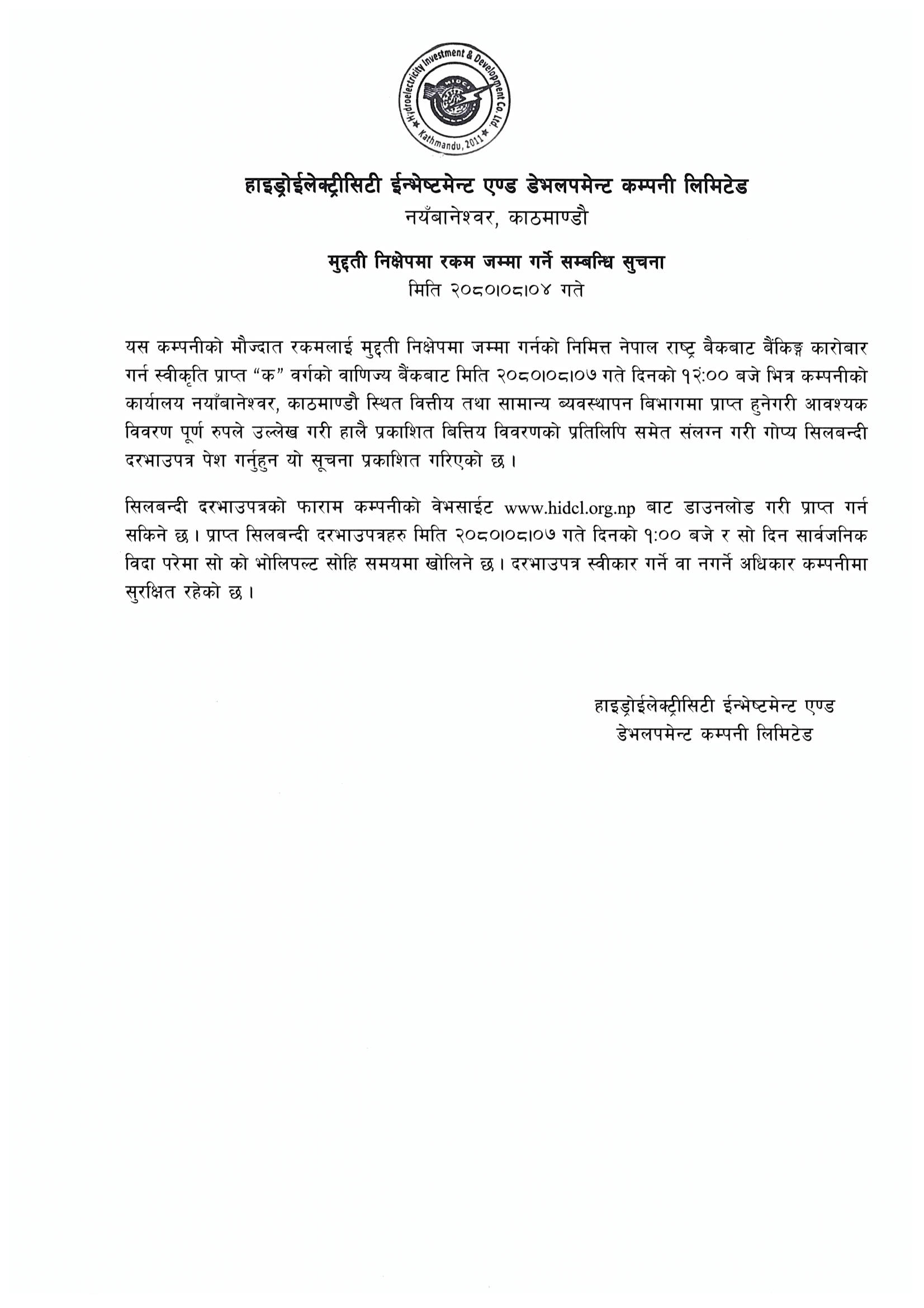 - मुद्दती निक्षेप रकम जम्मा गर्ने सम्बन्धि सुचना