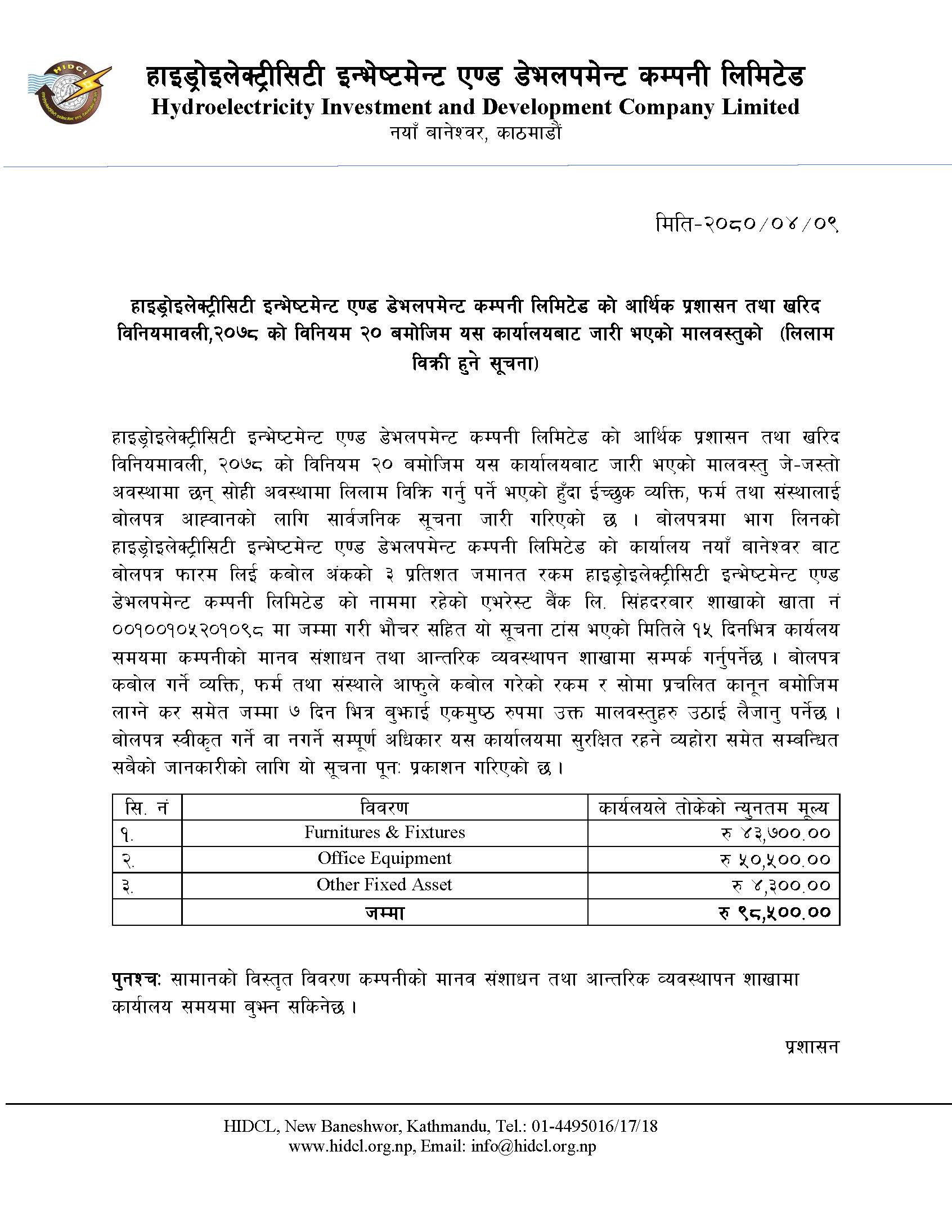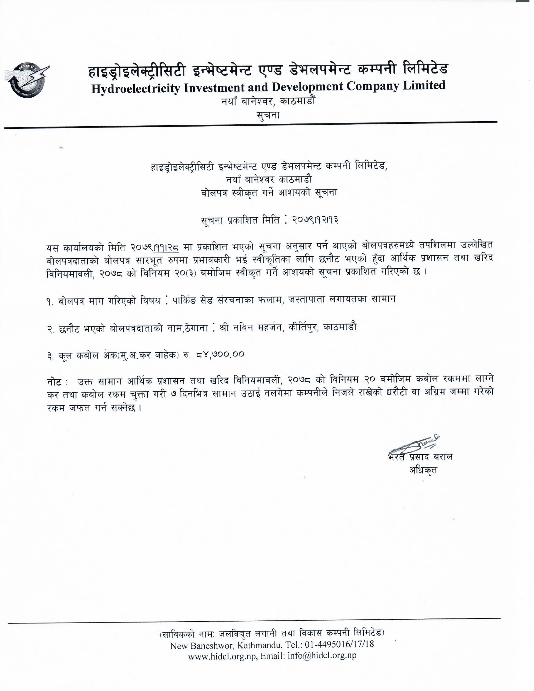 - बोलपत्र स्वीकृत गर्ने आशयको सूचना