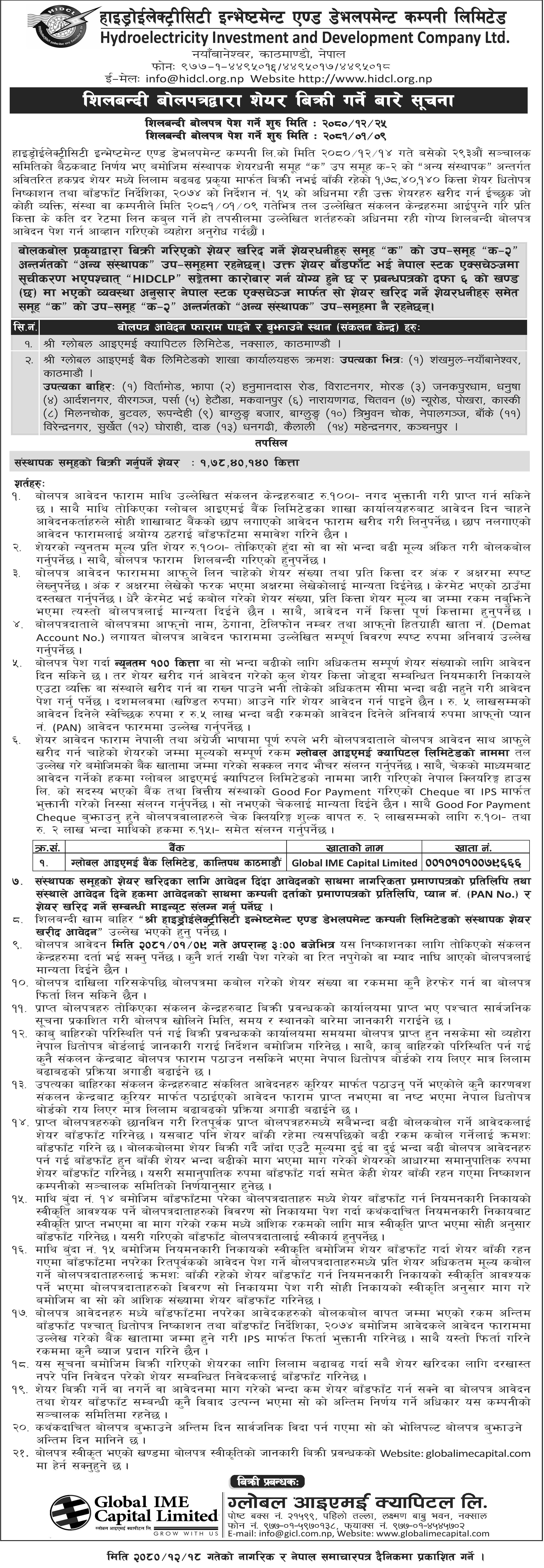 - शिलबन्दी बोलपत्रद्वारा शेयर बिक्री गर्ने बारे सूचना