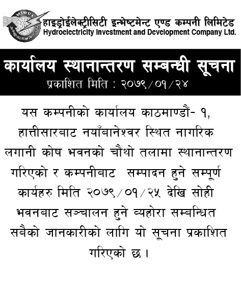 - कार्यालय स्थानान्तरण सम्बन्धी सूचना